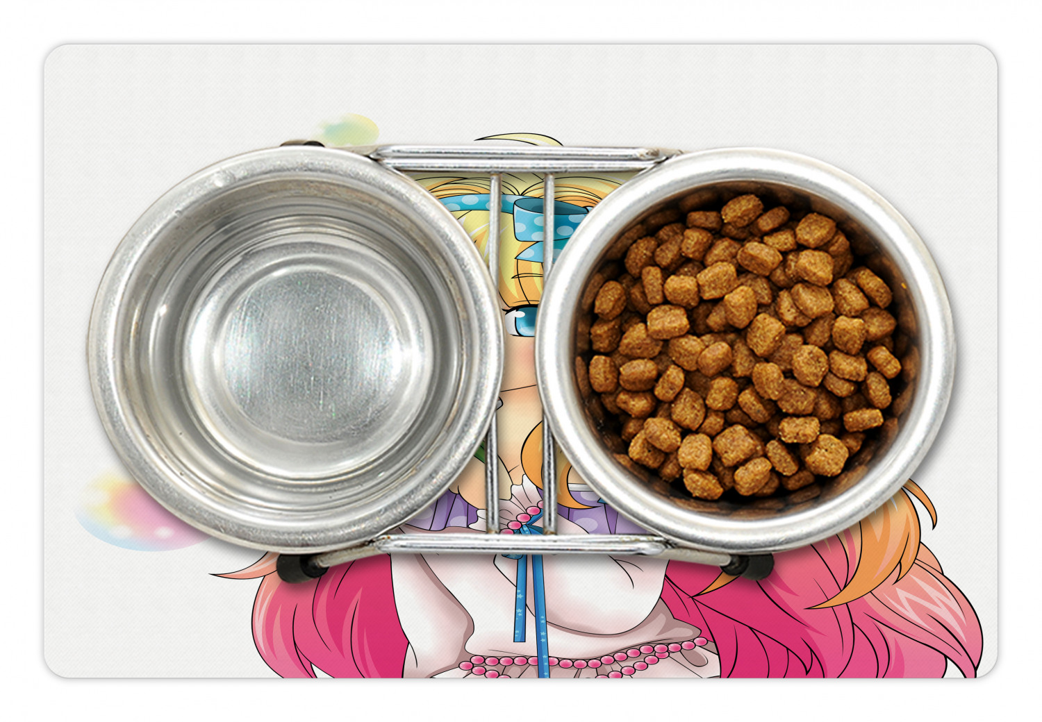 Anime Pet Mat For Food And Water Manga Girl Blowing Bubbles From A Flower Japanese Cartoon Japan Art Print Non Slip Rubber Mat For Dogs And Cats 18 X 12 By Ambesonne